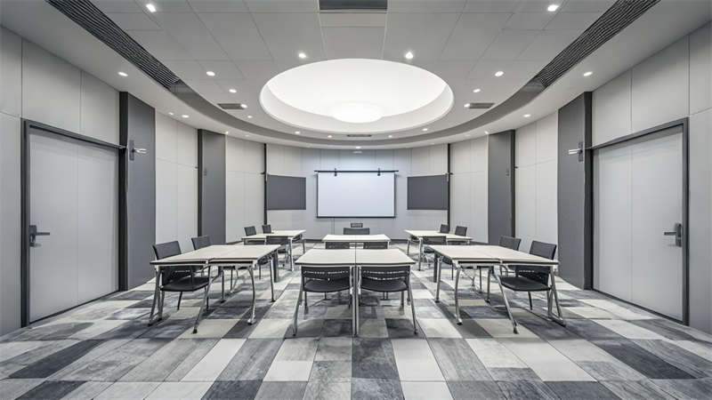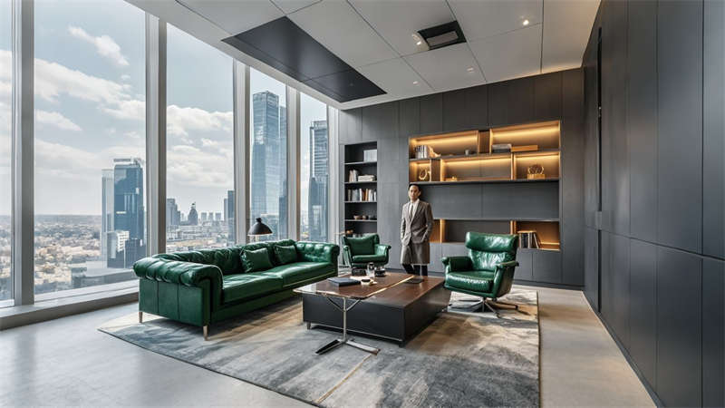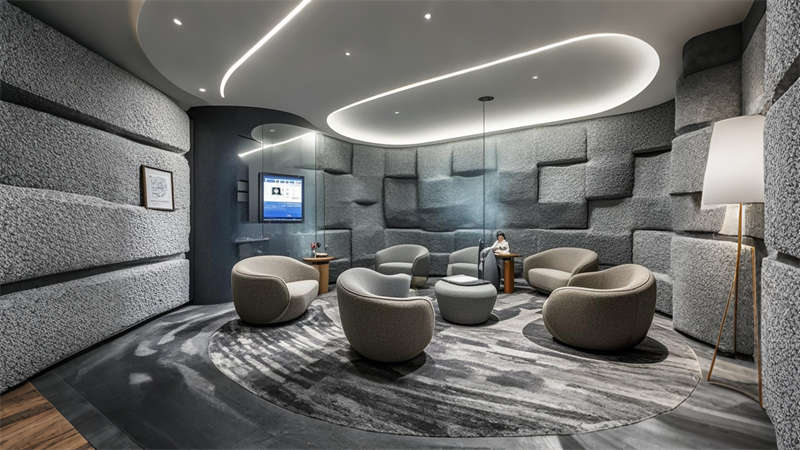 照明設計采用 3000K-4000K 色溫分區控制,重點區域設置磁吸軌道燈滿足展陳需求。聲學處理方面,關鍵會議室采用雙層中空玻璃與吸音毛氈墻面,確保 45 分貝以下靜音標準。全案貫徹 LEED 認證標準,90% 建材達到環?;厥找?,實現美學價值與實用功能的有機統一。
