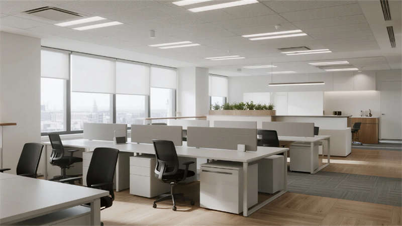 內(nèi)部空間延續(xù)外部的純凈氣質(zhì)。企業(yè)大堂以淺白色大理石地面與溫潤(rùn)木紋墻面奠定基調(diào),弧形純白前臺(tái)點(diǎn)綴深藍(lán)企業(yè)標(biāo)識(shí),懸浮線性燈光延伸視覺。右側(cè)等候區(qū)模塊化沙發(fā)與綠植盆景營(yíng)造舒適氛圍,左側(cè)數(shù)字影像墻動(dòng)態(tài)展示企業(yè)風(fēng)采,淺灰肌理漆背景墻在隱藏?zé)魩в骋r下更顯質(zhì)感。開放式辦公區(qū)強(qiáng)調(diào)高效與靈活,白色穿孔吸音天花下,淺灰可升降桌與黑色人體工學(xué)椅組合排列,協(xié)作島與窗邊高吧臺(tái)滿足多元需求,淺木紋PVC地面增添自然暖意。高管辦公室運(yùn)用灰玻隔斷與電動(dòng)霧化膜保障私密,胡桃木辦公桌、深灰皮質(zhì)沙發(fā)與嵌入式書柜彰顯沉穩(wěn),無主燈設(shè)計(jì)營(yíng)造專注氛圍。公共支持區(qū)模塊化吧臺(tái)、淺木紋儲(chǔ)物柜與智能文件柜集成高效服務(wù),細(xì)節(jié)處的綠植點(diǎn)綴延續(xù)生態(tài)關(guān)懷。整體設(shè)計(jì)從外至內(nèi),以統(tǒng)一的色調(diào)、考究的材質(zhì)與智能化細(xì)節(jié),塑造出體現(xiàn)合肥創(chuàng)新精神的智慧辦公新標(biāo)桿。