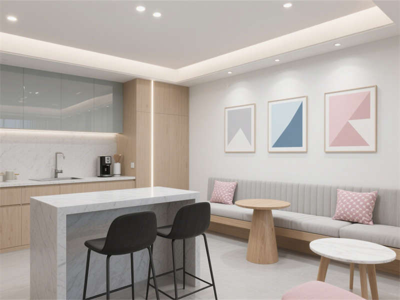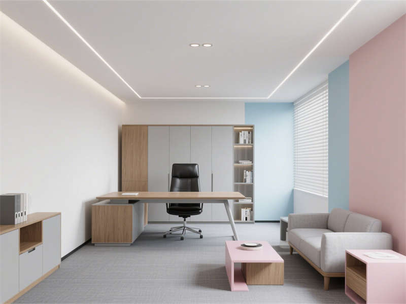 開放辦公區(qū)注重通透感與實用性,合理的工位布局兼顧隱私與交流,原木紋桌面增添溫馨感,點綴的莫蘭迪色系線條讓空間更顯靈動。經(jīng)理辦公室融合辦公與接待功能,皮質(zhì)辦公椅與木質(zhì)家具提升質(zhì)感,靠窗的休閑角落為辦公之余提供放松空間。?