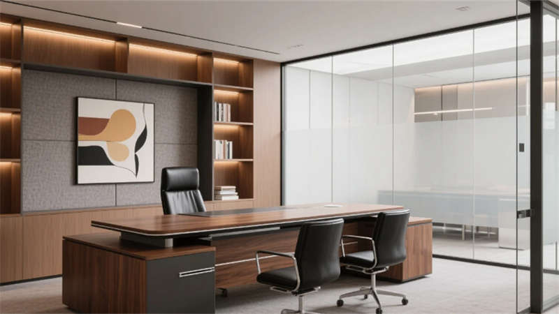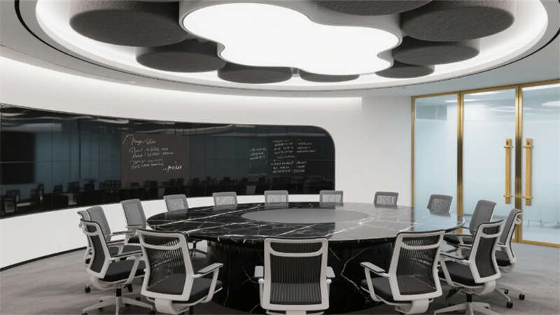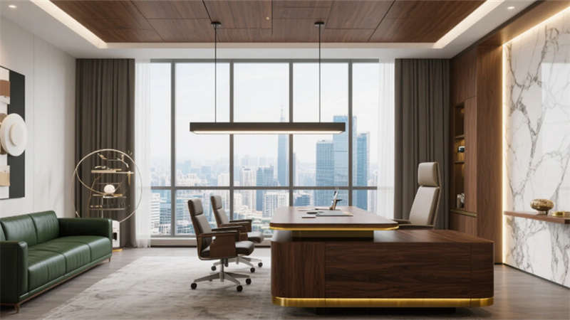 私密空間演繹克制的精致:經理辦公室玻璃隔斷內,胡桃木書桌與毛氈吸音墻平衡理性與溫度;總裁套間則以大理石暗光墻面對話城市天際線,黃銅細節點亮低調的尊崇。會議室黑石長桌與磁吸玻璃書寫面碰撞靈感,而公共休息區陶土花盆與橄欖綠軟墊,在混凝土中島上生長出松弛的煙火氣。