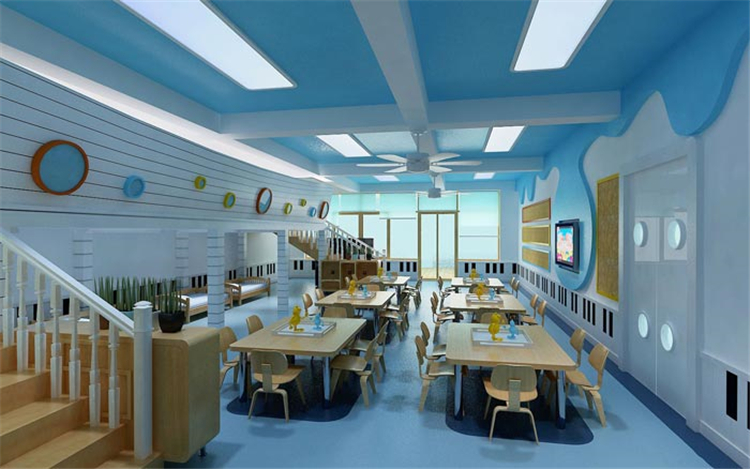 就餐區的設計:在這里孩子們將會享受到美味的佳肴,一個班級的孩子們坐在一起用餐,可以培養彼此之間的默契,在就餐結束之后,孩子們可以幫忙收拾餐具,這是要培養孩子動手的能力,在一切都結束之后,孩子們可以坐在一起看自己喜歡的動畫片。