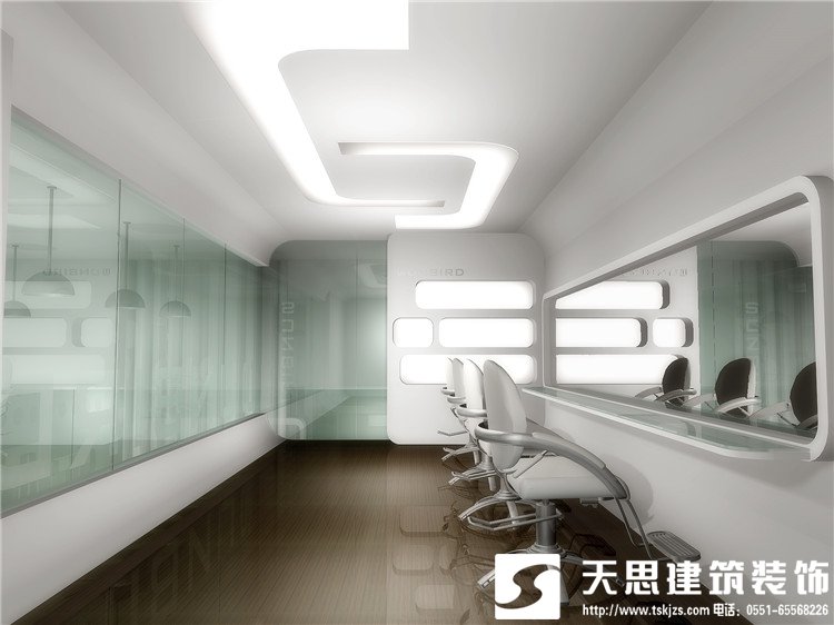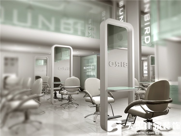 美發(fā)店的操控區(qū)占整個(gè)店面面積的四分之三到三分之二不等,操作區(qū)是直接服務(wù)顧客的地方,設(shè)計(jì)師秉承以寬松、干凈、舒適為宗旨,考慮到了顧客方便、暢通。美發(fā)店整體設(shè)計(jì)要求鏡子要明亮,椅子、床鋪要精美,外形要獨(dú)特,色調(diào)要統(tǒng)一。