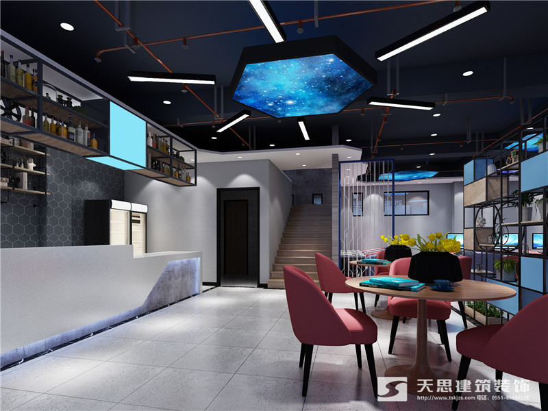 根據(jù)業(yè)主的要求,網(wǎng)咖設(shè)計(jì)的整體顏色以淺色為主,中間穿插對(duì)比強(qiáng)烈的撞色系來(lái)展現(xiàn)效果。