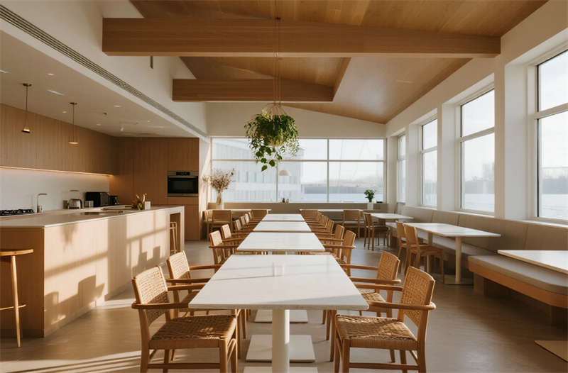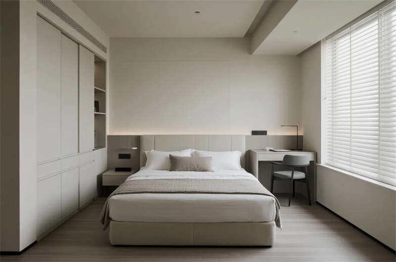 該設(shè)計(jì)以“城市綠洲”為核心理念,打造兼具功能與美學(xué)的經(jīng)濟(jì)型住宿空間。建筑外觀采用干凈利落的幾何切割,淺灰與玻璃材質(zhì)碰撞出輕盈現(xiàn)代感,入口綠植墻軟化都市冷硬氛圍。內(nèi)部空間貫徹簡(jiǎn)約哲學(xué):模塊化家具系統(tǒng)最大化利用面積,榻榻米客房集成儲(chǔ)物與休憩功能,隱藏式燈光營(yíng)造舒緩氛圍。公共區(qū)域強(qiáng)調(diào)共享與自然連接,早餐區(qū)落地窗引入晨光,綠植點(diǎn)綴的休息區(qū)提供社交場(chǎng)景。材質(zhì)選擇克制而統(tǒng)一,淺木色、微水泥與亞麻織物構(gòu)成低飽和度基調(diào),局部點(diǎn)綴抽象線條藝術(shù),呼應(yīng)合肥現(xiàn)代都市氣質(zhì)。設(shè)計(jì)聚焦高效運(yùn)營(yíng)與人文關(guān)懷,通過智能分區(qū)和環(huán)保細(xì)節(jié),為旅客提供回歸本質(zhì)的寧?kù)o棲居體驗(yàn)。