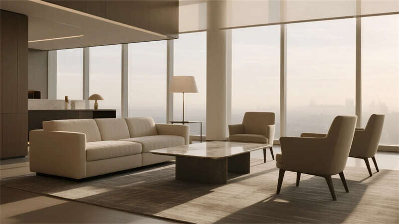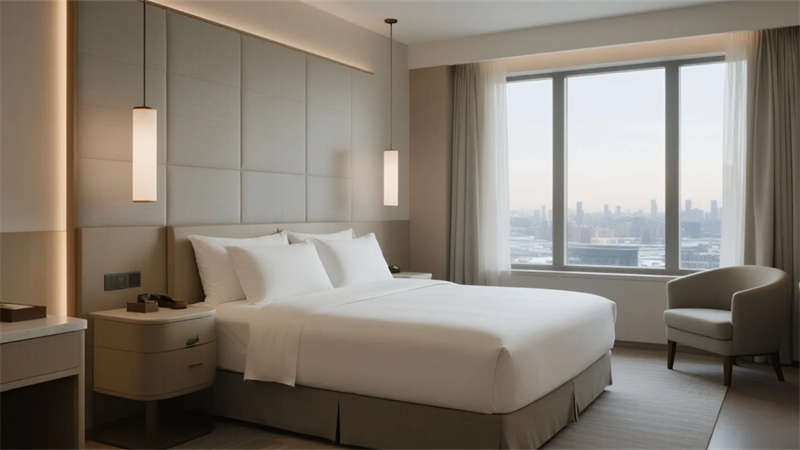 空間布局開闊通透,巨大的落地窗將自然光引入室內,與精心設計的隱藏式燈光系統共同營造出溫暖而富有層次的光影氛圍。從大堂的恢弘大氣到客房的靜謐溫馨,每一處細節都旨在為旅客提供一種沉浸式的、回歸本真的休憩體驗。整體設計強調人與空間的情感連接,在簡約中蘊含深度,于現代中流露溫潤,成就了一處城市中可呼吸、可感知的詩意棲居地。