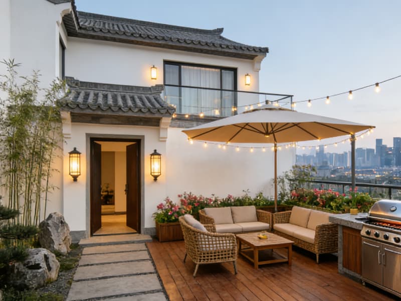 細(xì)節(jié)設(shè)計(jì)中,選用環(huán)保實(shí)木、天然石材等溫潤材質(zhì),燈光采用分層設(shè)計(jì)(公共區(qū)暖光氛圍燈、客房柔和閱讀燈),公共區(qū)域設(shè)置共享洗衣房與行李寄存區(qū),提升旅居便捷性;同時植入本地非遺手作裝飾(如徽州竹編、剪紙),強(qiáng)化空間文化歸屬感。整體設(shè)計(jì)既保留民宿的人文溫度,又通過輕奢質(zhì)感與智能配套,為客人打造兼具文化體驗(yàn)與舒適旅居的優(yōu)質(zhì)休憩載體。