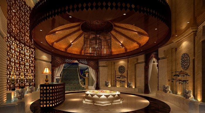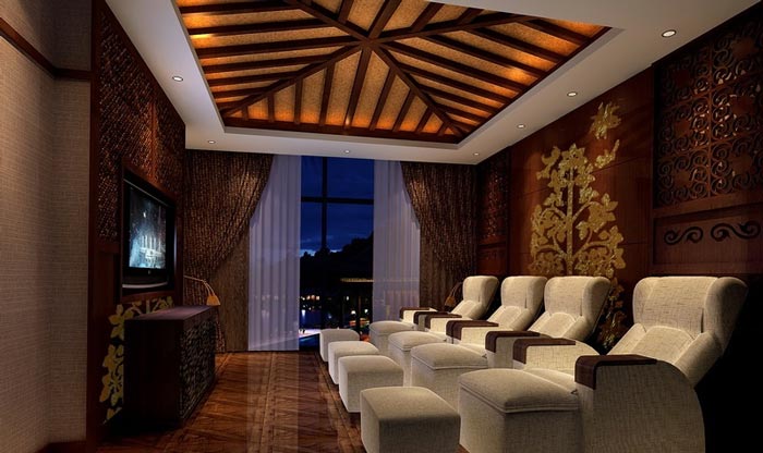 在空間及功能上,立體大氣且具有東南亞風(fēng)情的接待大廳與風(fēng)格典雅奢華的異域包廂相結(jié)合,再巧妙地融入東方獨到著佛教元素,從文化和生活層面?zhèn)鬟_(dá)出現(xiàn)代人對休閑養(yǎng)生的高品質(zhì)追求。