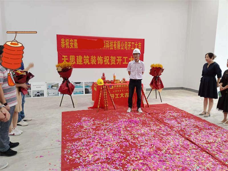 天思裝飾在此攜全體員工恭祝安徽一2000平科技廠房開工大吉!!!感謝業主對我們天思建筑裝飾的信任,我們必不負所托,保證工程的效率與質量,將項目完美完成,交給客戶一份滿意的答卷!
