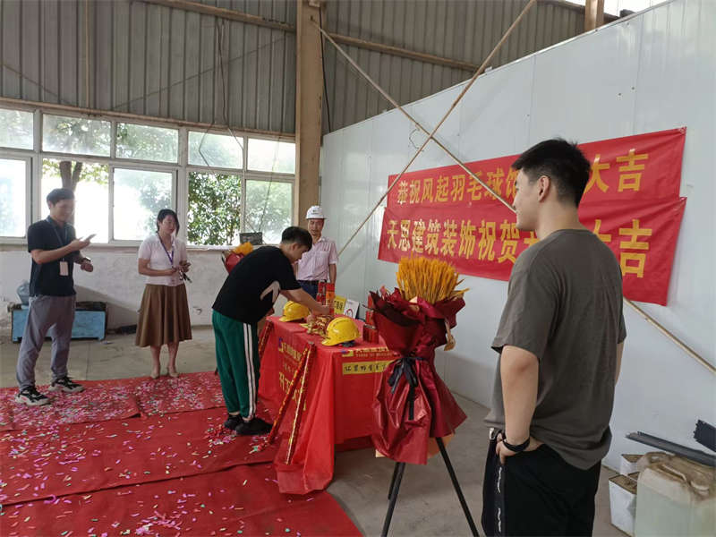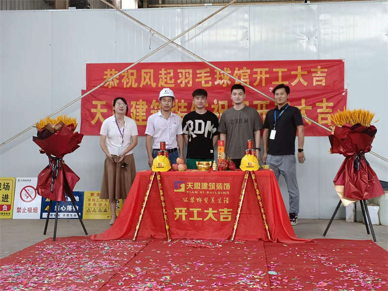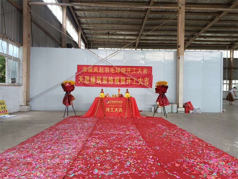 2022年7月18日,陽光高照,在這個晴朗的日子里,風起羽毛球館裝修工程正式開工啦,讓我們在這里一起道一聲:“開工大吉!”。感謝業主對我們天思裝飾的信任,我們必不會辜負客戶的信任!