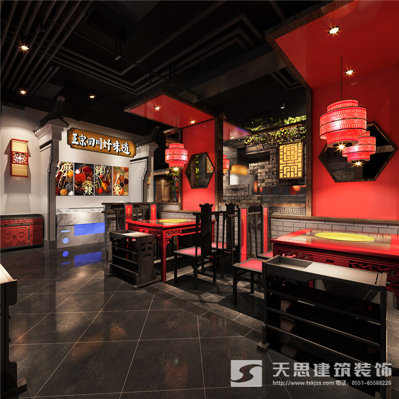 合肥香天下火鍋店分店裝修設計效果-安徽淮南店