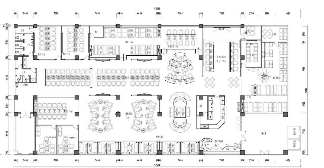 美式風格咖啡廳網吧室內空間設計平面圖