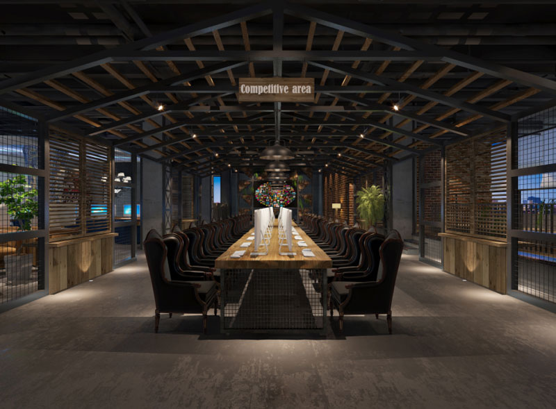 合肥網咖裝修:美式風格咖啡廳網吧室內空間設計方案(含效果圖+實景圖)