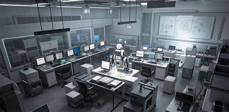 本次1000平方米機(jī)器人制作實(shí)驗(yàn)室設(shè)計(jì)以高效、科技與人性化為核心,打造多功能研發(fā)與生產(chǎn)空間。入口與接待區(qū)現(xiàn)代簡(jiǎn)約,配備企業(yè)標(biāo)識(shí)和科技感裝飾,營(yíng)造專(zhuān)業(yè)氛圍。機(jī)器人組裝區(qū)寬敞實(shí)用,工作臺(tái)和自動(dòng)化設(shè)備布局合理,滿足高效生產(chǎn)需求。研發(fā)與設(shè)計(jì)區(qū)開(kāi)放式布局,配備3D打印機(jī)和白板,激發(fā)團(tuán)隊(duì)創(chuàng)造力。測(cè)試與調(diào)試區(qū)科技感十足,測(cè)試平臺(tái)和監(jiān)控設(shè)備確保產(chǎn)品性能。材料存儲(chǔ)與物流區(qū)高效有序,自動(dòng)化搬運(yùn)設(shè)備提升效率。會(huì)議室與協(xié)作區(qū)設(shè)計(jì)簡(jiǎn)潔,智能設(shè)備支持高效溝通。