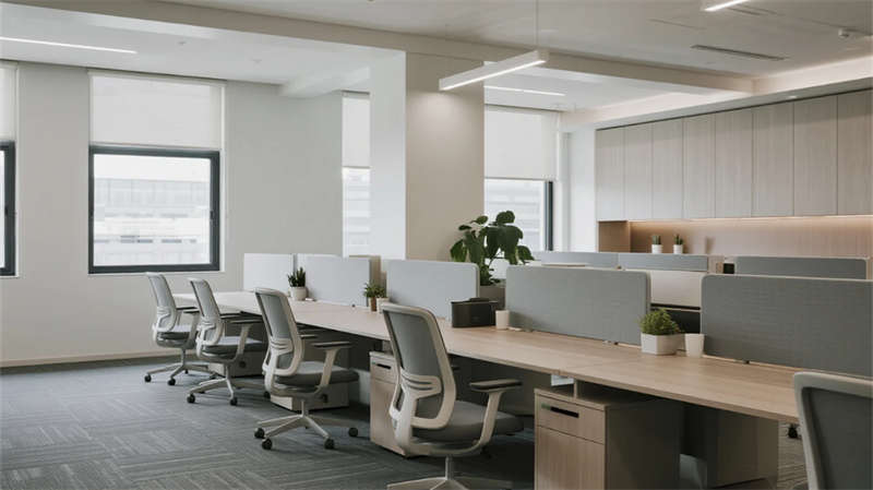 在現(xiàn)代簡約風格的引領(lǐng)下,該辦公空間以開放性和人文關(guān)懷為核心,打造了一個流暢而高效的日常工作環(huán)境。整體設(shè)計強調(diào)視覺統(tǒng)一性,通過淺色調(diào)的墻面與地板、簡潔的家具線條以及自然元素的融入,營造出寧靜而專業(yè)的氛圍。功能區(qū)之間無縫銜接,例如協(xié)作區(qū)與開放式辦公區(qū)通過綠植和智能燈光形成自然過渡,確保團隊互動的同時兼顧個人專注需求。休息茶水區(qū)則以溫馨的布局促進員工放松,而創(chuàng)意工坊區(qū)則激發(fā)創(chuàng)新思維,多功能活動區(qū)則支持多樣化的工作模式。