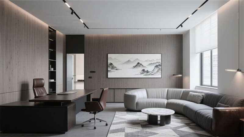獨立辦公室與會議室則強調私密性與功能性,合理劃分區域,滿足不同辦公場景的使用需求。休閑區域的打造融入自然元素,為員工提供放松身心的空間,緩解工作壓力。整體設計中,色彩以低飽和色調為主,搭配金屬線條與木質元素點綴,既體現出現代商務的簡潔大氣,又增添了空間的溫度與質感,全方位提升辦公體驗。