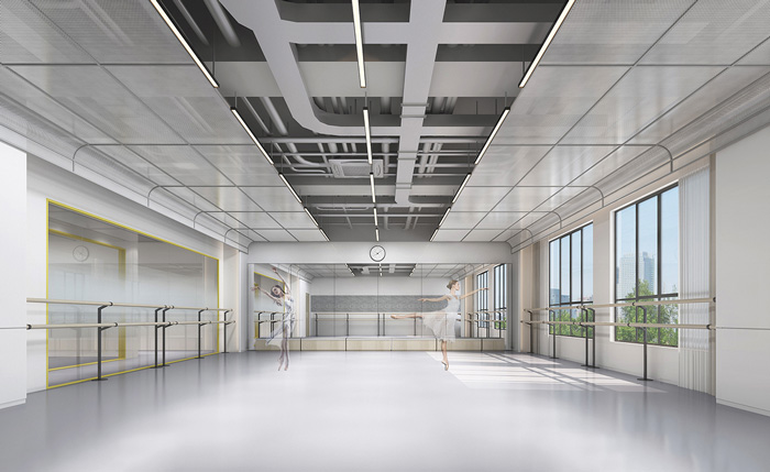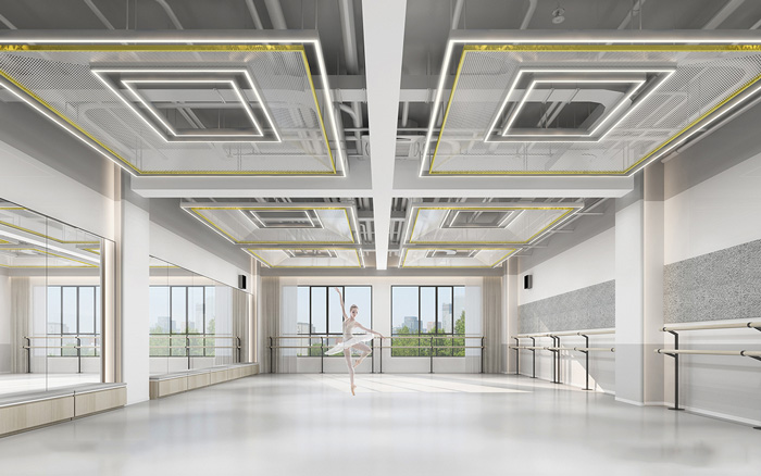 此處藝術(shù)學(xué)校設(shè)計(jì)中,告別了五彩斑斕的顏色,突出了空間的簡(jiǎn)潔與干凈,用黃色做為點(diǎn)綴色提升空間的趣味性。