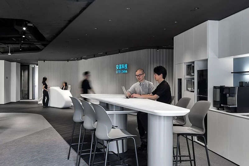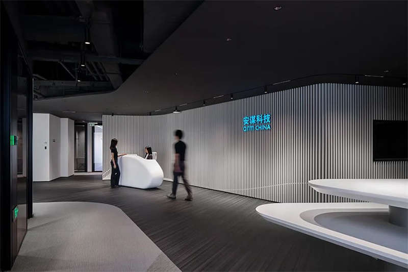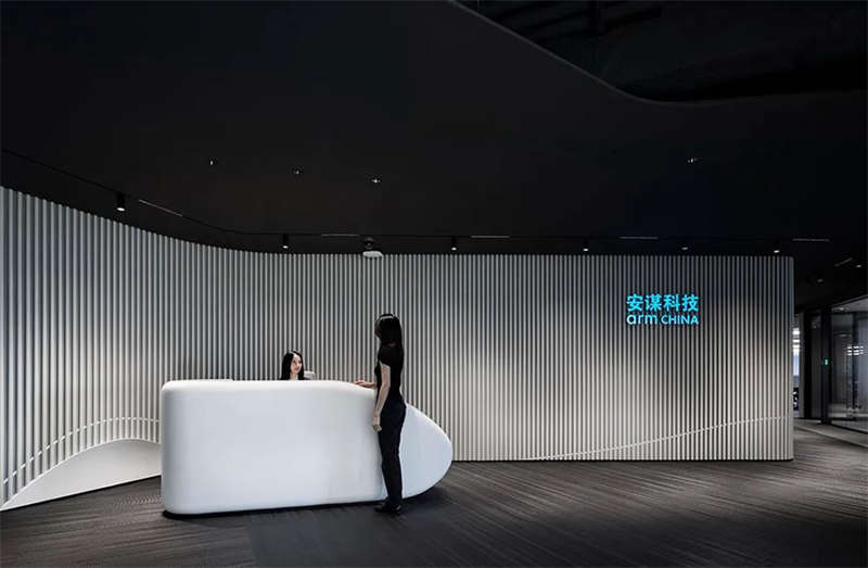 設(shè)計過程中也不乏挑戰(zhàn):如何在空間設(shè)計中顯示出Arm China 特有DNA以及未來辦公的前瞻性?一工團隊為此做了充分調(diào)研,成為智能計算生態(tài)的領(lǐng)航者,這是Arm的一個企業(yè)愿景,我們同時理解了Arm最新的VI轉(zhuǎn)型設(shè)計。設(shè)計師把此次項目當作一顆未來的種子,以點破面,將Arm的員工當作未來的種子和探索者。在空間中用動線、機理和光和設(shè)計手法引導來訪者在新的辦公空間朝向往的方向生長。