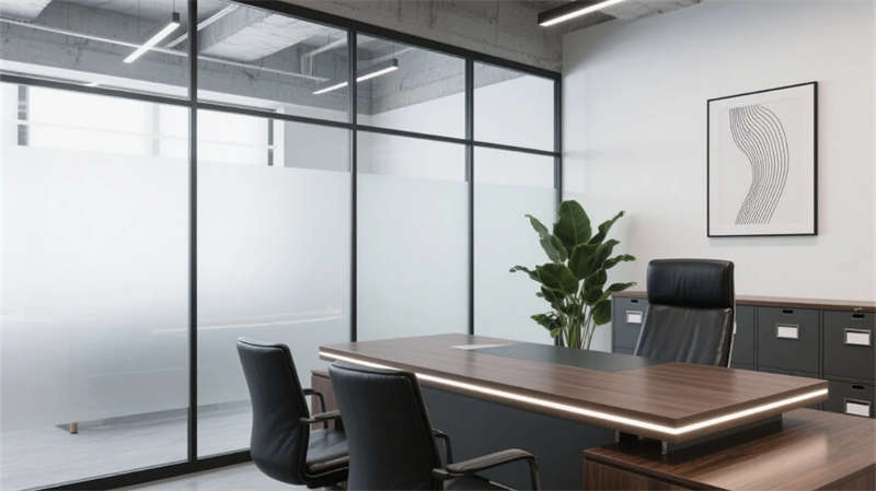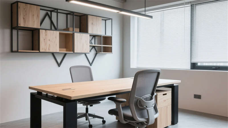 步入空間,現代簡約工業風以原始肌理與智能元素碰撞出獨特韻律。淺灰水泥與原木的基調貫穿始終,裸露結構構件與暖光線性照明形成張力,綠植垂直裝置在冷峻材質中注入自然呼吸感。開放式辦公區模塊化桌椅靈活組合,落地窗引入天光,軌道射燈精準聚焦高效場景;獨立辦公室的磨砂玻璃隔斷兼顧隱私與通透,深胡桃木桌面沉淀商務氣質。