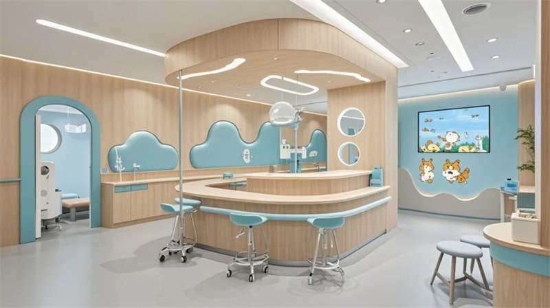 本套方案以"療愈型醫療空間"為核心理念,打造4500㎡現代簡約醫療綜合體。設計采用淺木色與醫療藍的經典搭配,通過流線型空間架構與模塊化功能分區,實現醫療專業性與人文關懷的有機融合。