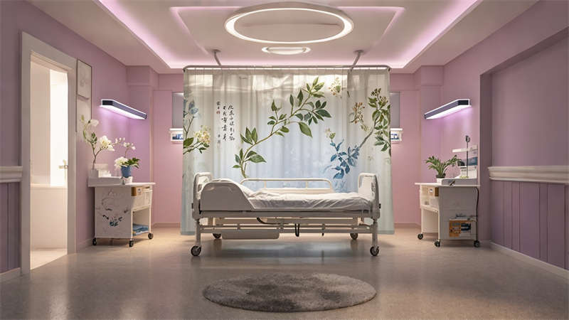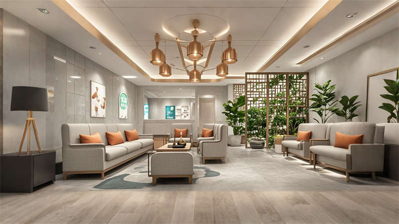 本2000平中醫(yī)院設(shè)計(jì)融合傳統(tǒng)中醫(yī)文化與現(xiàn)代醫(yī)療功能,采用 ' 療愈之境 ' 核心理念。空間規(guī)劃采用 ' 回' 字形動(dòng)線,門(mén)診、診療、康復(fù)三大功能模塊環(huán)繞中央庭院布局。色彩體系以米白、淺灰為基底,點(diǎn)綴赭石、黛青等傳統(tǒng)中藥色彩,墻面肌理漆模擬紙張質(zhì)感呼應(yīng)古籍文獻(xiàn)。診療區(qū)域采用模塊化隔斷系統(tǒng),兼顧隱私與通風(fēng)需求。智能照明系統(tǒng)可模擬晝夜節(jié)律變化,候診區(qū)座椅集成無(wú)線充電功能。重點(diǎn)區(qū)域設(shè)置 AR 中醫(yī)文化互動(dòng)裝置,住院部走廊每 10 米設(shè)置中藥香薰擴(kuò)散點(diǎn)。材料選擇注重環(huán)保性與耐久性,地面采用防菌 PVC 卷材,墻面使用易清潔的納米涂層。整體設(shè)計(jì)通過(guò)現(xiàn)代設(shè)計(jì)語(yǔ)言詮釋中醫(yī) ' 天人合一 ' 理念,打造兼具專(zhuān)業(yè)醫(yī)療功能與人文關(guān)懷的現(xiàn)代化中醫(yī)院空間。